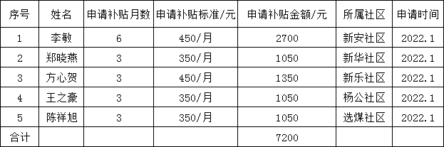 2022年1月就业困难人员社会保险补贴认定发放名单的公示