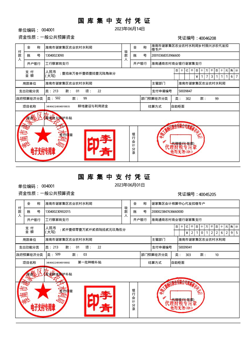 谢家集区2023年耕地地力保护补贴资金发放情况