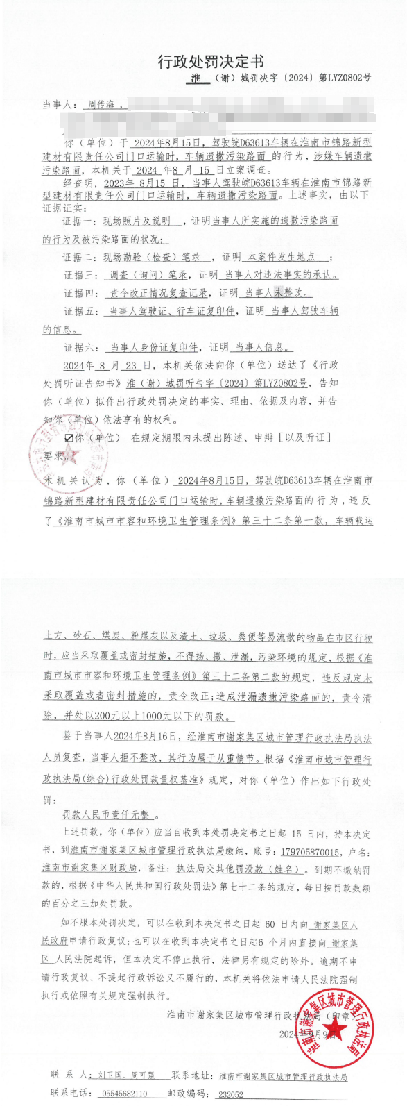 行政处罚决定书