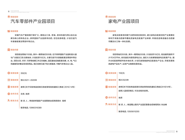 【招商引资】2021年淮南市招商引资项目册