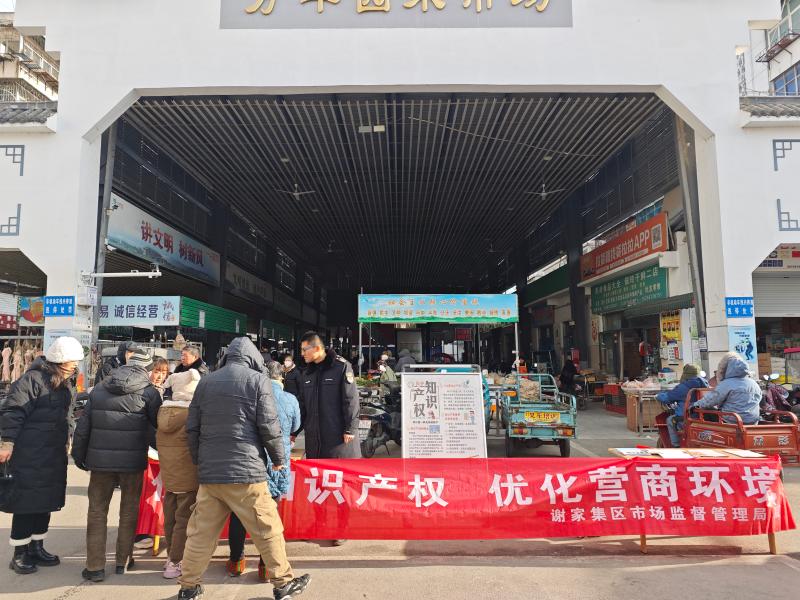 为加强知识产权宣传普及工作,着力打造公正诚信的营商环境,提升市场主体及人民群众的知识产权意识,1月23日,谢家集区市场监管局联合谢家集区知识产权保护工作站来到芳草园大市场开展了知识产权进市场宣传活动。
