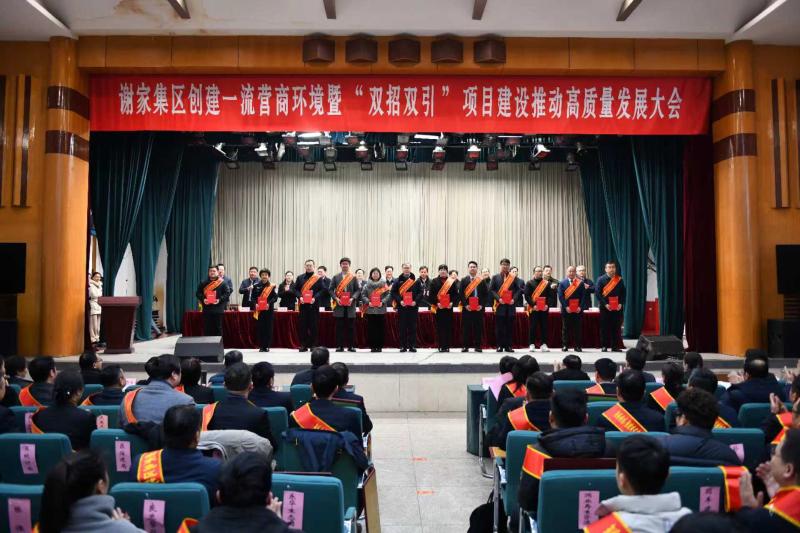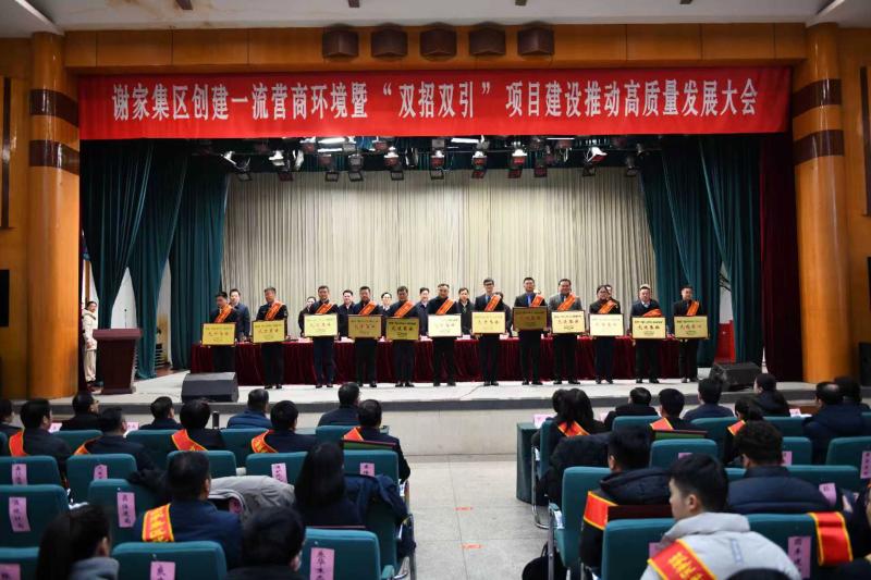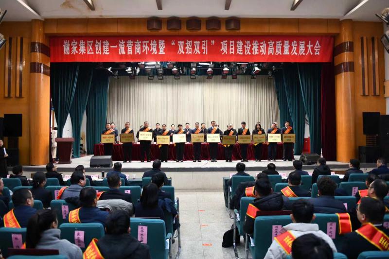 会议传达学习了全省创建一流营商环境暨推进民营经济高质量发展大会精神,全市创建一流营商环境暨“双招双引”推动高质量发展大会精神;区委常委、常务副区长苏永利宣读了《关于2023年度全区招商引资工作考核情况的通报》《关于表彰2023年度谢家集区“实施五大攻坚行动,实现高质量发展”先进集体和先进个人的决定》《关于表扬2023年度全区工业企业20强、优秀商贸服务业企业、农业产业化企业及个体工商户的通报》《关于表扬2023年度谢家集区财税工作先进单位的通报》;区领导为受通报表扬的优秀企业、优秀个体工商户、先进集体及先进个人代表颁奖;部分受表彰单位和个人作了交流发言。