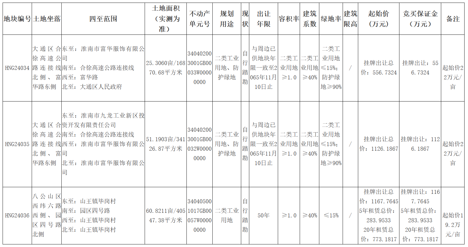 淮南市自然资源和规划局国有建设用地使用权挂牌出让公告(HNG24034-24036)
