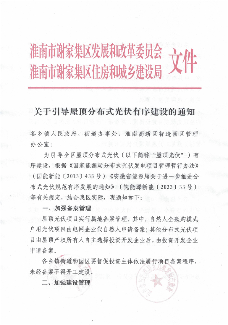 关于引导屋顶分布式光伏有序建设的通知