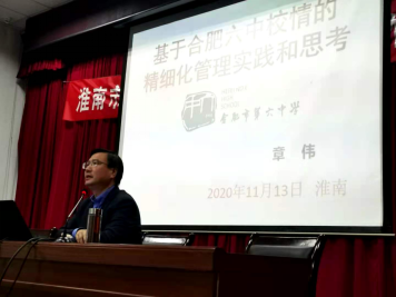 会上,五所省级示范高中分别从不同侧面,汇报了在高中教学工作中的探索及2021年高考备考情况的安排。会议还专门邀请合肥六中教学副校长章伟作了题为《基于合肥六中校情的精细化管理实践和思考》的讲座。