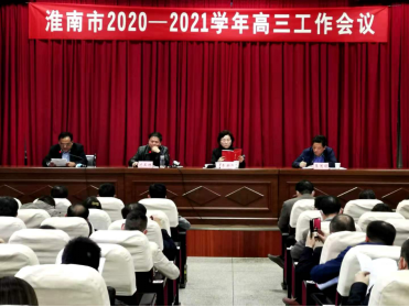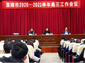 2020年11月13日,淮南市2020-2021学年高三工作会议在市教师进修学校召开。此次会议主要目的是总结近年来尤其是2020年全市高三工作及高考情况,研究部署2020-2021学年全市高三教育教学工作,盯住目标求突破,全力以赴做好2021年全市高考备战。出席会议的有市教体局党委书记、局长李蔚然,市教体局党委委员、副局长王国明。会议由市教体局党委副书记、副局长过其林主持。