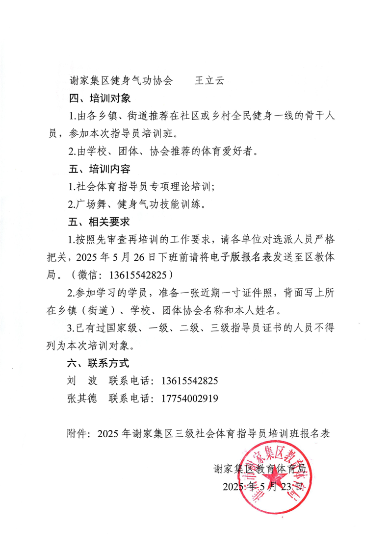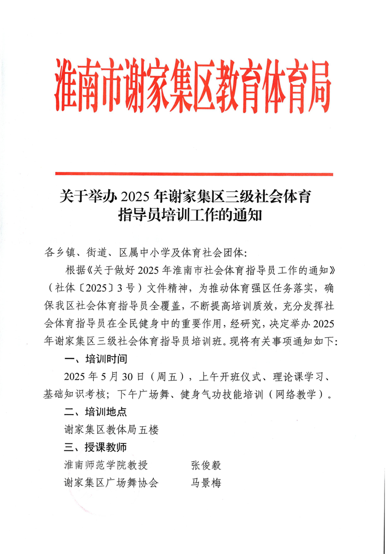 关于举办2025年谢家集区三级社会体育指导员培训工作的通知