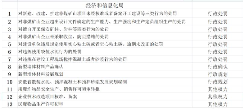 谢家集区经信局行政职权目录总表(2021版)