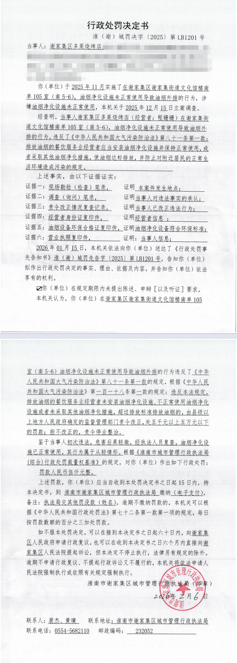 行政处罚决定书