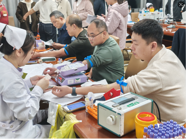 活动现场大家热情高涨,在血站工作人员和单位志愿者的引导下,干部职工纷纷挽起衣袖,伸出胳膊,有序完成了填表登记、血压初筛、血液采集等献血环节。累计共有64名干部职工完成献血,采血总量达17600毫升,其中11人参加了造血干留样,自愿为社会奉献一份爱心。