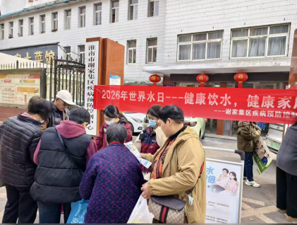 2026 年 3 月 23 日,谢家集区疾病预防控制中心围绕 “健康饮水 健康家庭” 主题,开展世界水日宣传活动。活动在中心门口及周边社区同步开展,通过悬挂主题横幅、设置分人群科普展板、现场答疑、发放宣传物料等方式,面向环卫工人、社区居民等群体,重点普及成人、老年人、儿童科学饮水知识,纠正饮水误区,引导广大家庭养成健康饮水习惯。本次活动直接服务 300 余人次,带动数百个家庭关注饮水健康,营造了重视家庭饮水、践行健康生活的良好氛围,有效提升辖区居民健康素养水平。