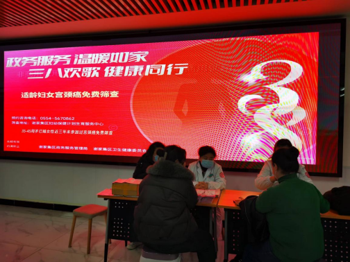 一、政务服务,健康同行——健康义诊宣传活动3月3日下午,区政务服务中心联合区卫健委(区妇幼保健中心)在政务服务中心开展了以“关注女性健康,预防子宫颈癌”为主题的宣传义诊活动。活动现场,由区妇幼保健中心的妇科专家们一边为前来大厅办事的女性免费测量血压,一边对预防宫颈癌等健康知识进行宣传,并提供宫颈癌免费筛查现场预约服务。活动期间,共发放《开展宫颈癌筛查关爱女性健康》宣传资料200余份,发放免费药品80余盒,免费义诊约100人次。此次宫颈癌免费筛选宣传义诊活动,让群众享受到优质高效便捷的医疗保健服务,受到了办事群众的热烈欢迎。区政务服务中心配合区卫健委在卫健委窗口设置常态化宣传预约点,为全区妇女持续送健康、送服务。