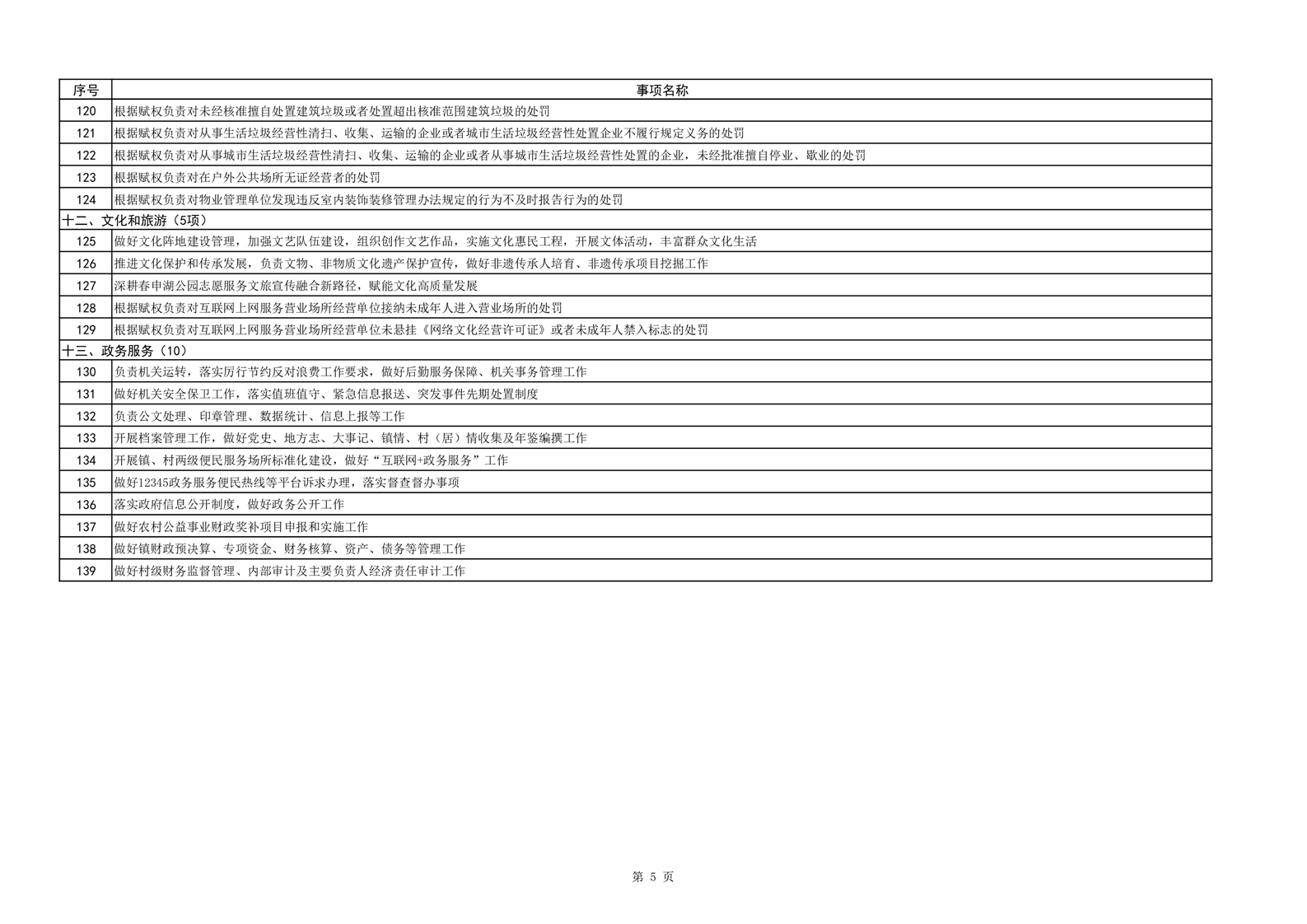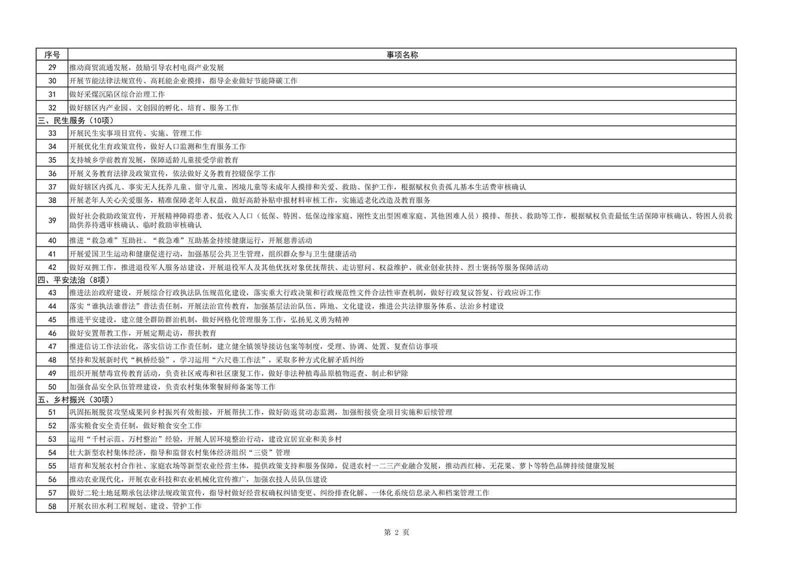 望峰岗镇履职事项清单