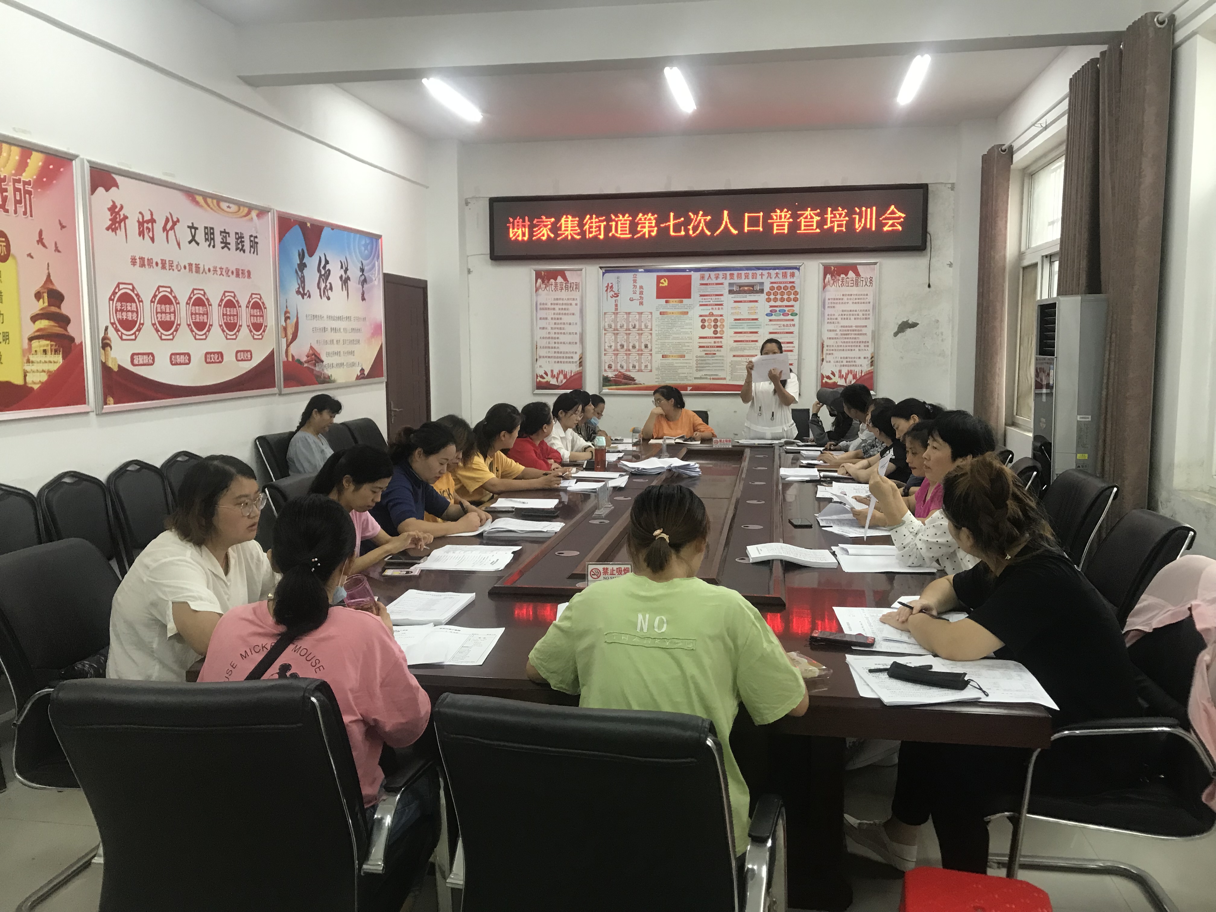 2020年9月15日上午,谢家集街道组织街道级普查指导员及各社区普查员在三楼会议室召开第七次全国人口普查培训会。