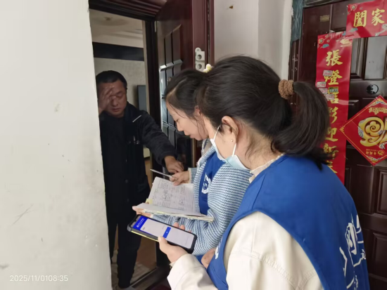 “您好,我们是2025年全国1%人口抽样调查的调查员,这是我们的工作证。”11月1日上午9时,谢家集街道熙城熙园小区内,身着蓝色马甲、胸前佩戴工作证的调查员,向打开门的住户进行了入户前询问。谢家集街道2025年全国1%人口抽样调查入户登记由此正式启动。