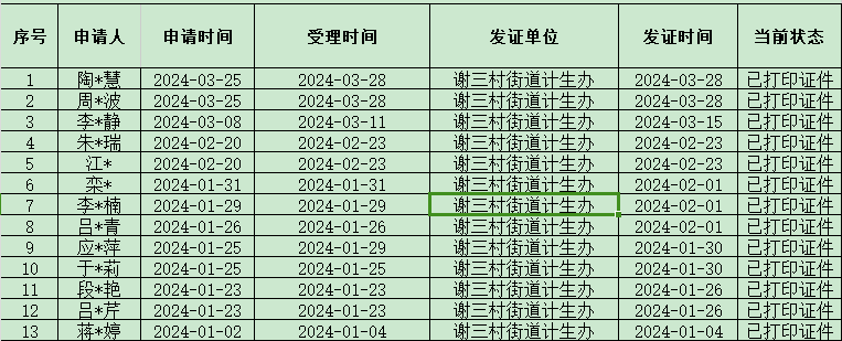 谢三村街道办事处2024年第一季度行政权力事项办理结果