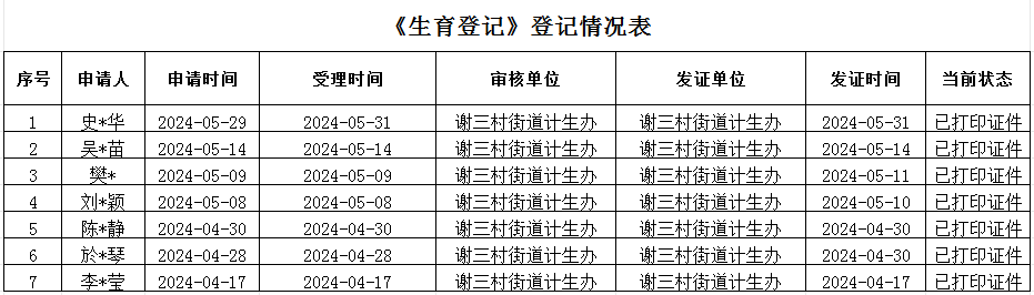 谢三村街道办事处2024年第二季度行政权力事项办理结果