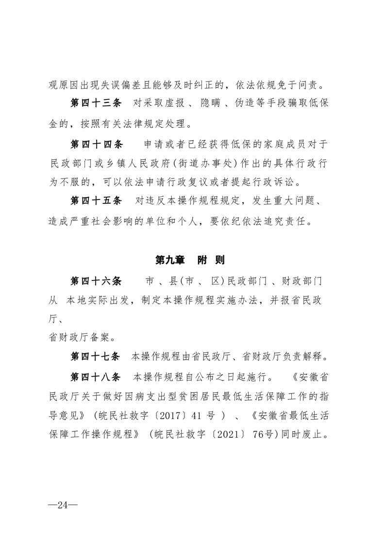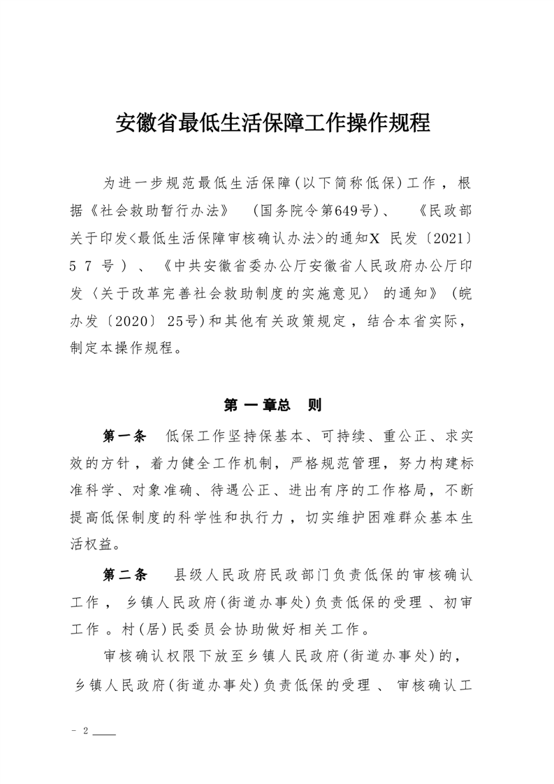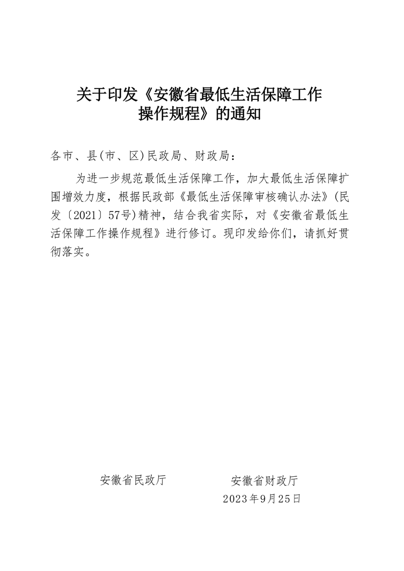 关于印发《安徽省最低生活保障工作操作规程》的通知(皖民社救字〔2023〕41号)
