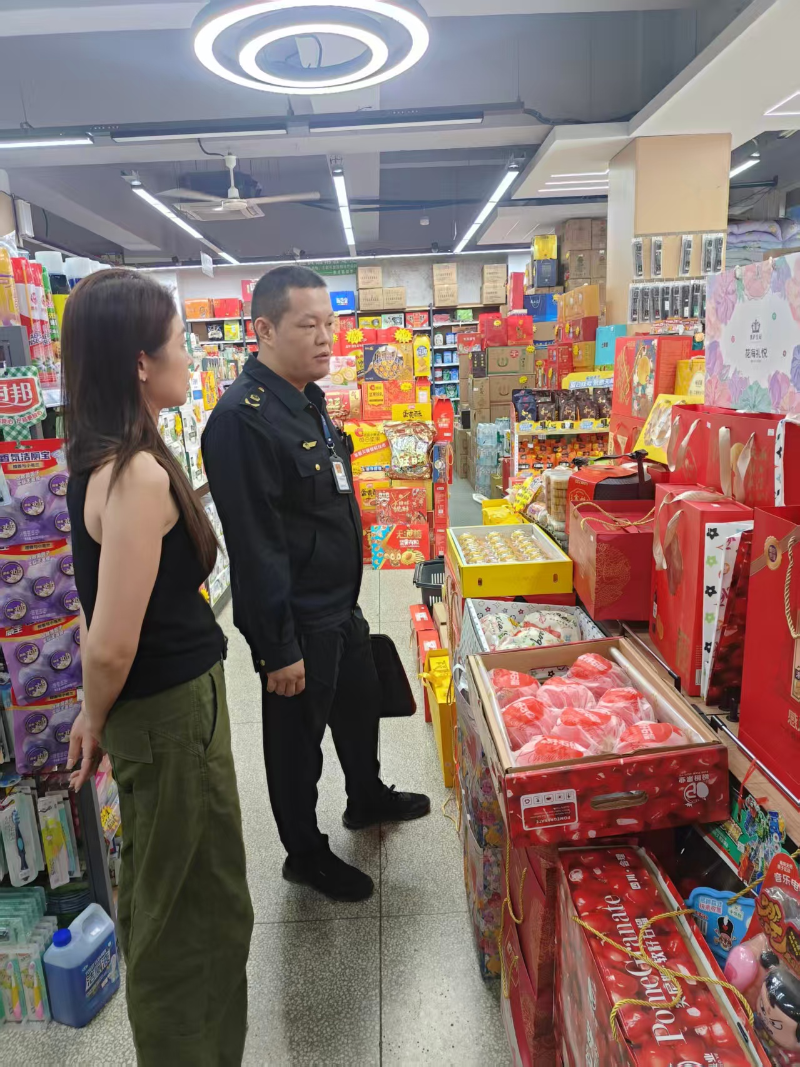 “二查”资质票据:在超市后台,执法人员随机抽取一款月饼,随即要求负责人提供该批次的进货凭证、生产厂家的营业执照、食品生产许可证及产品合格检验报告。他们逐页翻阅供应商资质文件,核对票、货信息是否一致,确保来源正规合法。