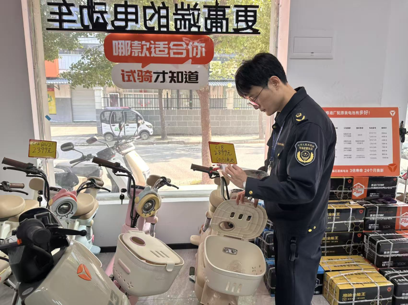 检查中,执法人员同步开展法规宣传与安全警示,向经营户和消费者普及《中华人民共和国产品质量法》《安徽省电动自行车管理条例》,重点宣传新国标《电动自行车安全技术规范》要求的2025 年 12 月 1 日起,“老国标”电动自行车全面禁止销售。与典型案例结合,详解非法拼装改装、销售“非标”车辆的安全隐患,引导经营户诚信守法,提醒消费者选择合规产品。