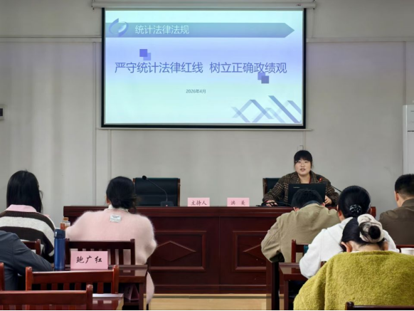 为深入贯彻落实习近平总书记关于统计工作的重要讲话和指示批示精神,推动树立和践行正确政绩观学习教育走深走实。4月11日,谢家集区统计局局长洪美为区委党校2026年中青年干部培训班学员共40 余人作统计法治专题授课,强化领导干部统计法治意识,筑牢防范统计造假、弄虚作假思想防线,推动依法统计、依法治统与树立正确政绩观同向发力、同频共振。