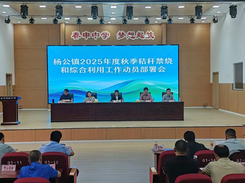 为扎实推进2025年度秋季秸秆禁烧和综合利用工作,筑牢生态环境保护防线,9月30日下午,杨公镇在春申中学报告厅召开专题动员部署会议。镇党委副书记、镇长柏沛文主持会议,镇机关全体工作人员、村社区“两委”全体人员,以及杨公派出所、城市管理行政执法杨公中队、各中小学校、托育机构、保洁公司代表等参会,凝聚多方力量共同擘画秋季秸秆禁烧工作蓝图。