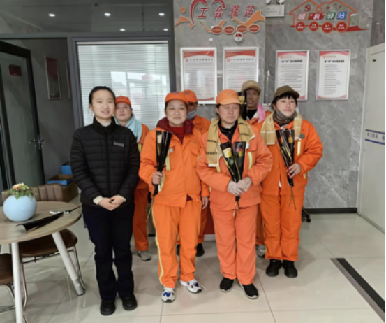 暖心慰问,致敬一线巾帼力量。 节日当天,镇团委联合辖区通商农商银行平山支行工会驿站,开展关爱户外女性劳动者主题慰问活动,为10余名环卫工人、外卖员等一线女性从业者送上鲜花与节日祝福,感谢她们为城镇运转付出的辛勤汗水,并叮嘱大家户外作业时注意防护、保重身体,让暖心关怀真正抵达基层一线。