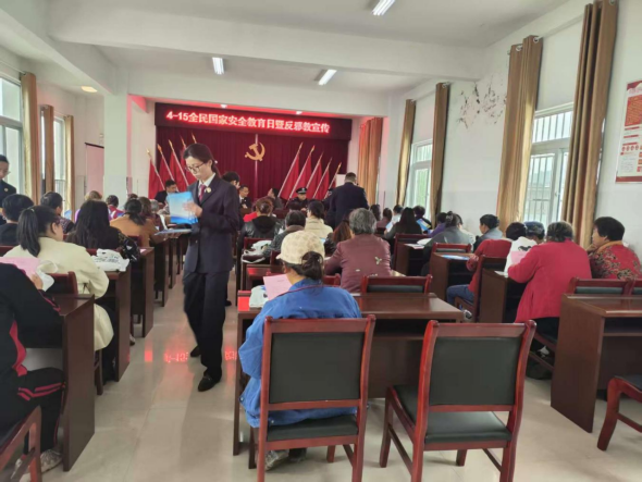 在全民国家安全教育日来临之际,为增强农村妇女和家庭防范邪教意识,筑牢基层反邪防线,4月14日,唐山镇妇联联合安徽省检察院、谢家集区委政法委、区检察院、区公安分局,在乳山村开展了一场以“崇尚科学 反对邪教 守护平安”为主题的法治宣传活动。活动充分发挥妇联组织联系妇女、服务家庭的独特优势,将反邪教知识送到田间地头、送入百姓家中。