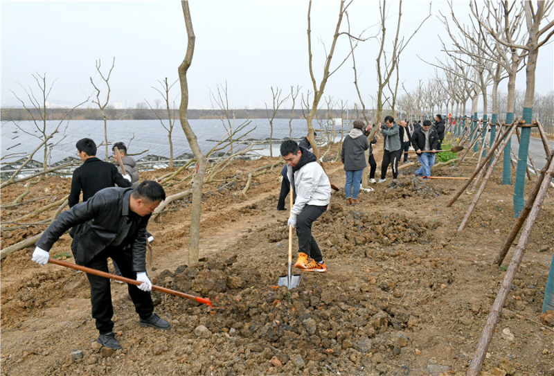 3月11日,淮南市谢家集区党员干部群众在望峰岗镇刘岗村一处采煤沉陷区治理项目现场开展义务植树活动,绿化家园。在第48个植树节来临之际,淮南市开展义务植树活动,美化绿化生态环境。