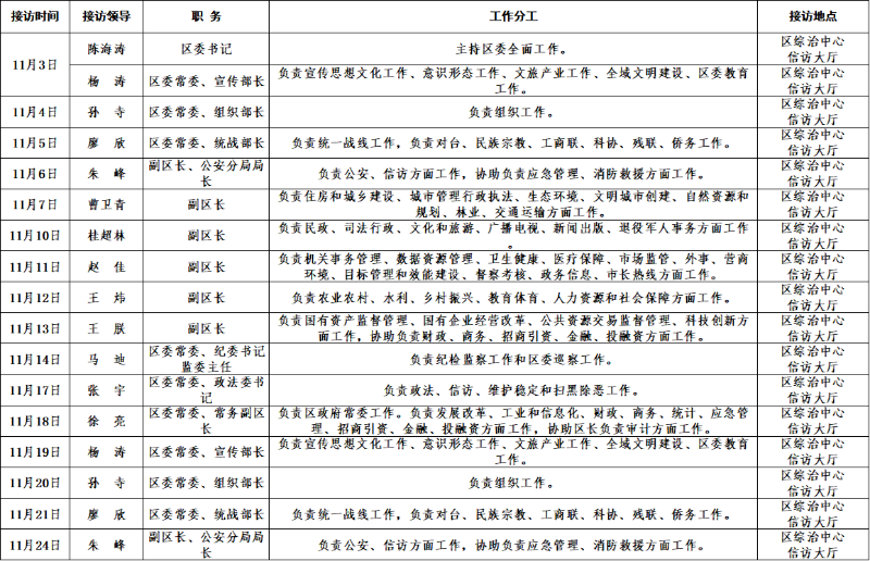谢家集区2025年11月党政领导信访接待公示表